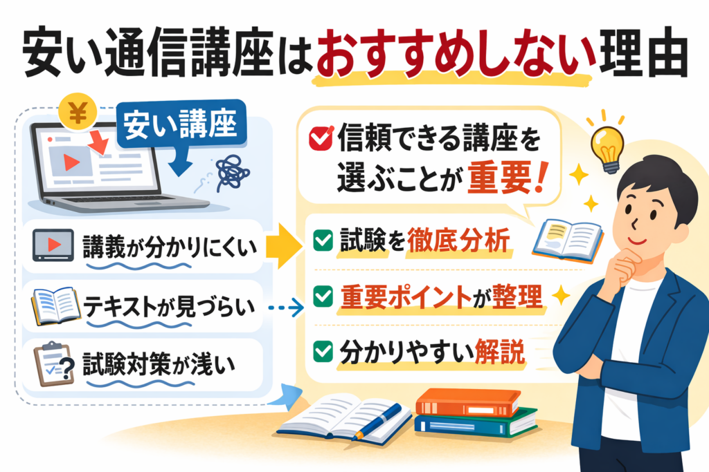 安さだけで講座を選ぶと、かえって遠回りになる可能性があります。